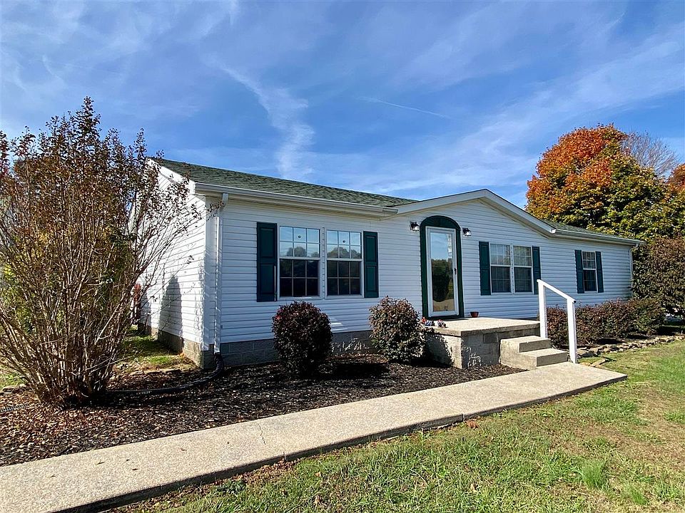 Manufactured (modular) home with permanent foundation. 2 acre lot with large pond (stocked). 3 car detached garage, large gazebo outside sitting area with rock walkway. HVAC system only 1.5 years old.