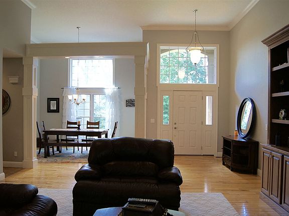Enjoy lake living at Greystone Subdivision in this beautiful home built in 2005. Welcomed by a spacious open concept with a formal dining area and living featuring hardwood floors throughout. Focal point stone wall fireplace and custom built-ins offer a great living and entertaining area open to the large kitchen and breakfast area. Nearby master bedroom suite is located nearby featuring trey ceilings, master bath with jetted tub and stand up shower plus access to the backyard from the bedroom. Additional bedrooms located on main level with jack-n-jill bath and walk in closets. Full finished basement offers an oversized family room with fireplace and adjacent rec area plus two additional bedrooms plus a private den. Private backyard with screened in porch, open deck and patio with fire pit. Nearby Chapman Lake pier, perfect for summer time fun.