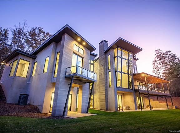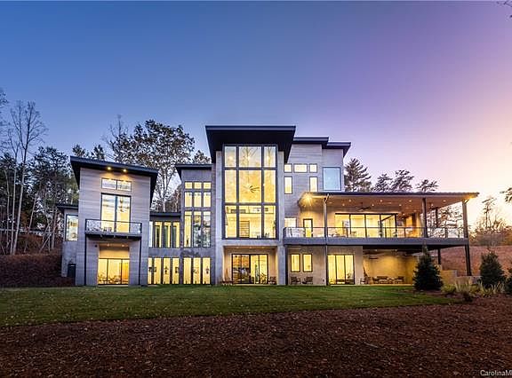 One of the most amazing homes at Lake James. Five private acres with over 800 feet of beach frontage. California inspired home is unlike any other at the lake. Glass entry is flanked by a stunning glass gallery leading to the master suite and the 30 foot cantilevered glass wall in the living area. Dream kitchen w/lavish butlers pantry. Open entire corner of the house to covered patio & outdoor kitchen dining area. Master suite w/private balcony, large enclosed shower & tub area, 2 spacious walk ins. Floating staircase leads to upper bedrooms & down to lower level-fitness room, sauna, guest suite, wet bar, family room, office, hot yoga room & half bath. Intercom & Sonos app surround sound, 3 car garage w/epoxy flooring, workshop area with built in cabinetry. RV parking pad w/50 amp hookup & dump station. Property is entirely fenced w/IPE gates. Short walk to the lake and covered dock for your boat & lake toys. Expansive water and views of the Linville Gorge & Blue Ridge Mountains.