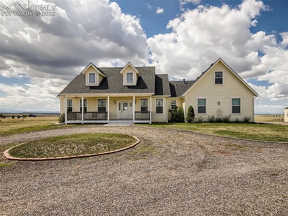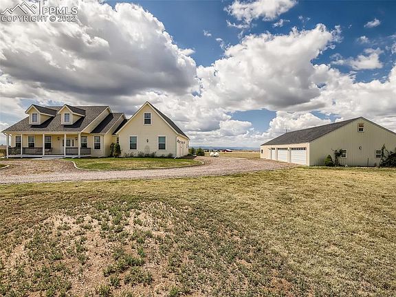 BACK ON THE MARKET. BUYER'S HOME DIDN'T SELL SO HERE'S YOUR SECOND CHANCE TO BUY THIS AMAZING PROPERTY. MAGNIFICENT VIEWS of Pikes Peak and the Front Range! Come and SEE!!! Custom Built in 2003 on over 10 Acres with beautiful, unobstructed views, an oversized attached GARAGE & a MASSIVE DETACHED WORKSHOP with power & water, a large loft & private OFFICE. This property will make a happy home with convenient main level living, full of natural light, 9' ceilings, and vaulted ceilings up to 15'. The primary bedroom is located on the main level with its own 5 piece bath, walk in closets, and walk out to the large deck with mountain views. The main level also includes a living room with a gas fireplace and vaulted ceilings, an eat-in kitchen with breakfast bar and plenty of cabinets. From the Kitchen you can easily step out to the back deck, perfect for relaxing or entertaining. To complete the main level there is a dinig room/office/1/2 bath/bedrooms 2&3/full bathroom and a laundry room (with a sink and a window). The upstairs is a 30x14 Bonus room, perfect for a game room or media room. The basement provides a large open space for a Mother-in-Law quarters or other family or guests with a Wet Bar and lots of natural light. Only 14 miles to Grocery stores and shopping and 36 miles to the Colorado Springs Airport. This property is zoned for horses and allows for barns and outbuildings.