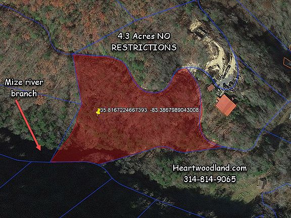 Inv # 2124 $39,900 4.3 acres +- NO RESTRICTIONS Sevier County, TN 16 miles to Gatlinburg, TN Located off Dunn Creek Rd 37876 Use GPS 35.817508,-83.385297 to locate the lower corner access Bear right off Creek Hollow way and cross over a concrete bridge. Road access: yes Power: public in the area Water: Needs well or tank Sewer: Needs Septic Annual Tax: $ 110 It really is possible to live the dream! Located minutes from Gatlinburg, Pigeon Forge, and Dollywood. A cup of coffee (15 miles) from one of the most beautiful lakes in the Country (Douglas Lake) and minutes from the Great Smoky Mountains National Park! There are 2,100 miles of rivers and streams as well as 150 hiking trails in Smoky Mtn Nat. Park. Don’t miss this opportunity to make your dream real! This is real, you can do it, but the first step is finding a great piece of property, and here it is at thousands less than true market value. Please call us before visiting any of our properties to be sure it is still available. No appointment is necessary. Visit the property at your convenience. We strive to post accurate information, but we recommend Buyers do their own due diligence. Feel Free to call us with any questions Dan or Rosie / Heartwood Land 314-814-9065