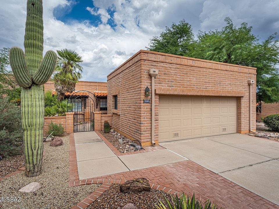Backup offers accepted through December. This is the dream house Barbie really wanted had she been given a choice (Little known fact - she hates pink). Fantastic location, great view, surrounded by Pima county walking park, and a really, really wonderful house to boot. The perfect size for every buyer looking for this exact size - A classic end unit, 2/2 townhouse, with a den, and some very nice updates including the primary bath. Bright and clean with lots of skylights to brighten things up even further and have you trying to turn off switches that were never on. Perfectly located near a couple of the best GVR centers in the Recreational complex including Bocce Ball courts just steps away. Furniture avail. I know... I had you at Barbie