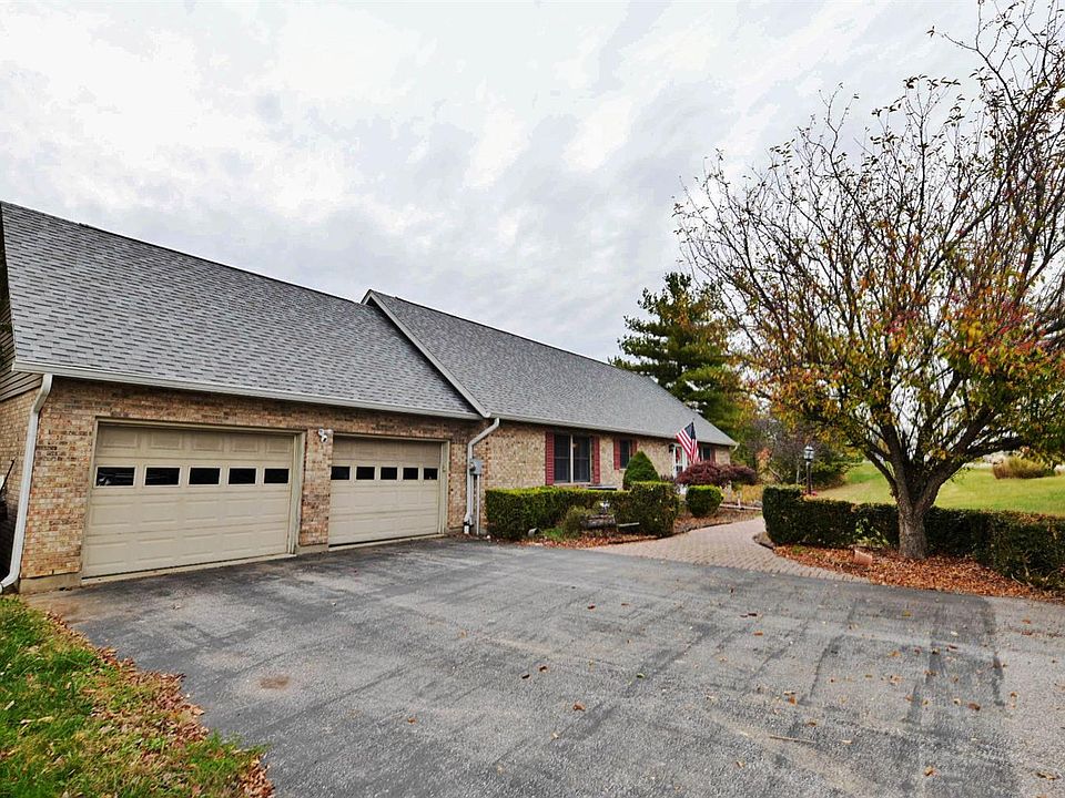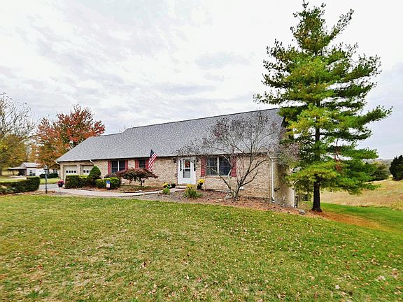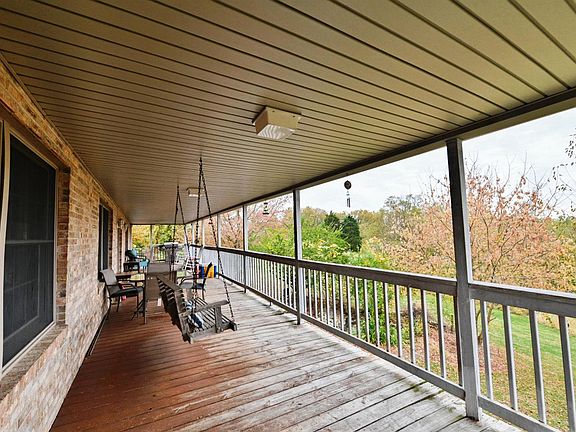 This is HUGE! All brick, 3930 finished sq ft of living area features 5 bdrms, 4 full bths, 2 complete living areas / kitchens. Main flr has 1 bdrm, living rm, dining area, eat-in kitchen, mstr suite & bath, study, huge deck; 2nd flr has 2 bdrm, living area & bth; LL has kitchen, bdrm, bth, living rm that walks out to lrg patio & a great view! Great for extended family living! Roof, furnace/ac 1 yr old. Close to Aurora & Rising Sun, but very private w/ great views!