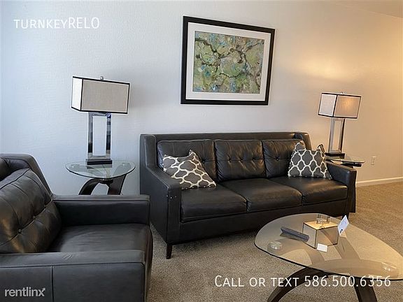 Price reflects a 30-day stay rate. Furnished, month to month, 30-day minimum apartment at Laurel Valley Apartments. Just south of Big Beaver (aka 16 Mile Rd) on Dequindre Rd., which is the border road between Troy and Sterling Heights. Long or Short Term. Everything included. Gated entry community, private entrance apartment, washer and dryer in the apartment. Fitness center, pool, Wi-Fi, covered parking and more. Photos display the actual furniture in most of the apartments. turnkeyRELO specializes in completely furnished accommodations and corporate apartments with flexible lease terms. You don't have to know your departure date when you book. Our Proven process works. We have it down to a science. Just bring your suitcase (TM). CLEAN Guarantee: If you don't agree that your accommodations are clean upon arrival we will refund your cleaning fee. Pricing displayed is for the first 30-days and could be a special rate. Call for details. Ask about extended lease specials. More options at the turnkeyRELO website. Pricing includes all furnishings, utilities, Internet, media and short term premiums. Parking: Multiple Included Covered Parking: One Included $175 cleaning/prep fee $500 security deposit Application Fee: $75.00 for the 1st occupant and $50.00 for each occupant thereafter. To secure a reservation, the application must be completed and the fee paid. Month to month. Open ended. One payment covers everything including TV/Wi-Fi, cookware, linens and everything else. Corporate housing for individuals or companies. Hassle free living. Easy move-in and easy departure. Our process works. We have it down to a science. Simple. Smooth. Flexible. See what our guests and clients say about us at the turnkeyRELO website. Pet friendly. No smoking.