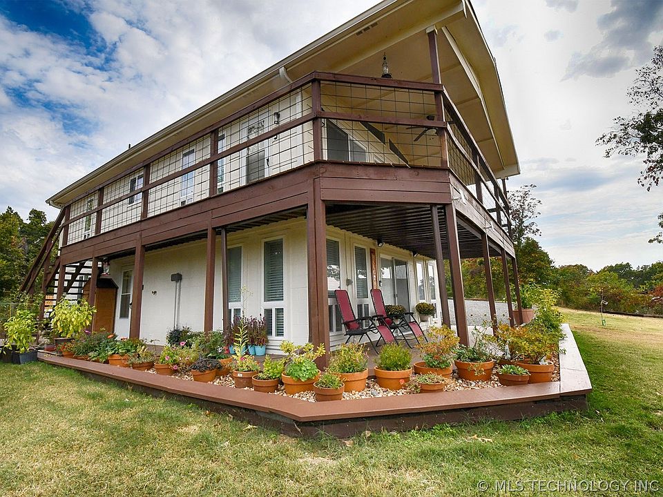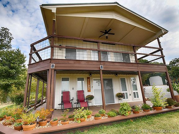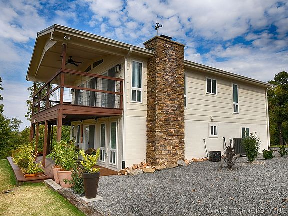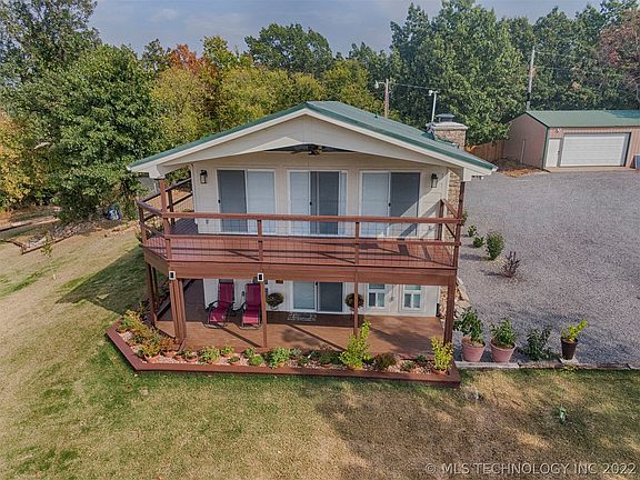 Gorgeous year round view of Lake Tenkiller in Woodhaven Resort, a residential area of Snake Creek Marina. Home has beautiful landscaping including recently planted trees and shrubs and also blueberry bushes. There is also a sprinkler system, composite decking on lower level, gutters, 24 x 25 shop with electric and epoxy flooring and a Generac Generator. Inside has 4 bed 2 bath with granite counters, tile in bathrooms, beautiful electric fireplace and wood flooring. One bedroom has a projection screen and blackout drapes so could be easily turned into a media room. So may more great upgrades! Very close proximity to boat marina and ramp. This home would also be a great VRBO or Airbnb.
