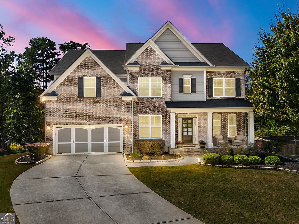 EXTRAORDINARY TRIPLE-LEVEL BRICK PALACE... Boasting nearly $250,000 in custom upgrades, this stunning pet-free immaculate luxury home is in one of the highest-rated school districts of renown Gwinnett County. Minutes to the Mall of GA, this like-new home is nestled in heart of very quite cul-de-sac. Level driveway leads to large, front covered porch... Enter home with formal office, formal dining room, and extra-large Grand room with "bowed" palladium windows- allowing a bright interior home. This entertaining open concept floor plan has a unique "Keeping Room" off the kitchen, providing a secondary entertainment area- can also be a sun room- yes, this home features a one-of-a-kind custom floorpan that sets it apart from the others! Full guest suite on main. Heavy trim package... Gourmet chef's kitchen with every luxury! Upper level features 4BRs/ 3 full BAs/ and an awesome 5th "step up" media room or 2nd office! Unique laundry room has private "pass thru" to elegant owner's bedroom suite. Almost no carpet- first & second floors hardwood, engineered wood- with basement level quality LVP. Terrace level is built out NICE!!! Features: Full guest suite with nicely appointed bath; game room or billiard room; bar or 2nd kitchen; theatre/ media room; and double-sized storage centers. Exit basement to super-sized screened in patio- overlooking BIG BIG sodded soccer-sized and level fenced yard- perfect for pool or play or gardening- and with amazing privacy... Some add'l notable features: (2) hot water heaters of 100 gal total; basement refrigerator remains- as well as the theatre seating. Being custom built in 2017 this home is only 9 yrs young and meticulously cared. Even comes EV-prewired at the garage! Community is very new, built out- and also has a wonderful family sports center. This gem has the WHOLE PKG folks... A sure-to-please winner on your list!
