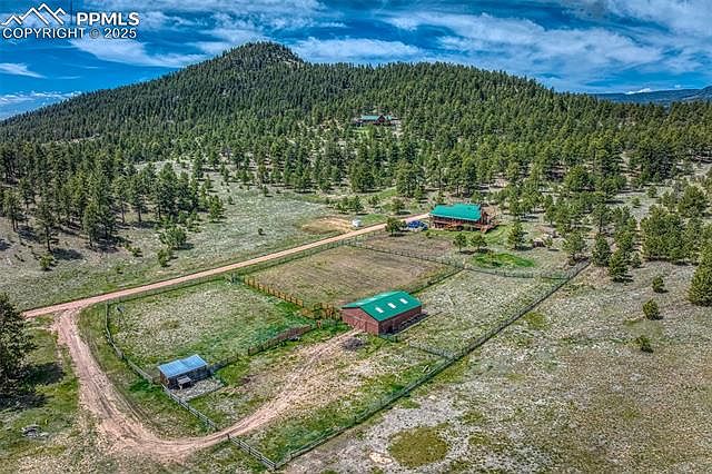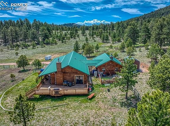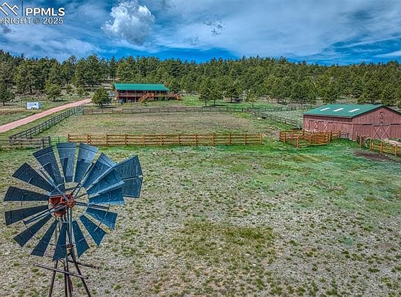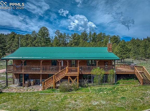Nestled amidst the majestic peaks of the Colorado mountains, this luxurious home offers a serene retreat on 35 acres of pristine ranchland. Crafted with timeless rustic charm and infused with modern amenities, this property promises an unparalleled lifestyle of comfort and adventure. So many features make this the ideal ranch getaway: heated 2 car detached garage, 5 stall barn with electricity, water and a chicken coop, a greenhouse for year-round produce along with two historic homestead buildings waiting for your ideas. The property is fenced/cross-fenced. This is a rare find with gently sloping land down to the horse barn and vast meadows that make it possible to use most of the property. And what incredible views from the large covered deck! There's even a seasonal pond. All this...and it's adjacent to thousand of acres of BLM land. The heart of the home, a gourmet kitchen, is a chef's dream, boasting upgraded appliances, granite countertops, and custom cabinetry. There's counter seating, a farmhouse sink and under cabinet lighting. Entertain guests in style in the expansive living room with stone fireplace, or retreat to the luxurious master suite for quiet relaxation. The master bath has been remodeled and there are new Anderson Windows throughout the home. The walk-out lower level offers abundant light and a practical lay-out with a family room area, space for a home office and a wood burning stove. There are two bedrooms on this level, a full bath and a large storage area. This Colorado dream home offers all you're looking for...and more! Close to the Royal Gorge Bridge & Park and the popular Arkansas River with world class rafting and fishing, plus easy day trips to Monarch and Breckenridge Ski Resorts. Whether you seek a secluded family retreat or a luxurious mountain getaway, this magnificent home offers an idyllic escape from the ordinary.