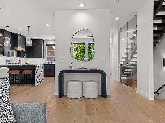 Looking for unparalleled lifestyle, directly on Boise River/Greenbelt, this designer remodeled home feels better than new construction & offers the finest in urban & natural living. Experience an open-concept masterpiece where sunlight floods every corner. Wind down in the living room, with its cozy fireplace, including a balcony offering panoramic views of the Boise River/Greenbelt. Gourmet kitchen features GE Café luxury appliances, sleek black cabinetry, & quartz countertops, showcased under designer pendant lights. Primary suite features its own balcony overlooking the Boise River, expansive WIC & spa inspired bathroom. The downstairs bonus room, complete w/ full wet bar, is ideal for entertaining or private in-home office. Embrace a lifestyle enriched by riverfront parks, breweries, exquisite wineries, and music scenes, all just steps away from your private outdoor living space. This award-winning condo development boasts an array of amenities, including a clubhouse, pool, & private grass beach.