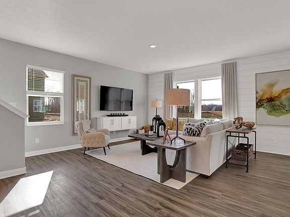 Peabody Farms West is a master-planned community of new single-family homes with upscale amenities, now selling in peaceful Whitestown, IN. Whitestown offers small-town charms with a lively downtown area and tons of parks for endless outdoor recreation. Among popular sites are the Big 4 Trail and Gateway Park, which includes an accessible fitness trail, zip line, shared play areas and swings. The Broadmoor's open concept on the main floor allows for easy entertainment & enjoyment. Enter the inviting foyer w/powder bath & huge under stair closet. Continue straight back into the generous Great Room, Kitchen & Nook. Upstairs, you will be greeted by a nice loft with 3 secondary bedrooms, hall bathroom, laundry room & the spa like owner's retreat which includes double vanities & a WIC. *Photos/Tour of model may show features not selected in home.
