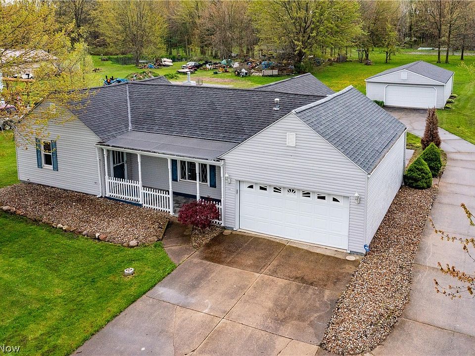 Welcome home to this adorable Grafton ranch, located within Eaton Township. This home offers 3 bedrooms and 2 full baths. The home welcomes you with a covered porch, great for drinking morning coffee while looking out to the open field across the street. Upon entering, you will notice the spacious living room with laminate flooring, bay window, and built-in shelves. The living room flows into the galley kitchen with an entrance from the attached two car garage. The dining room sits just behind the kitchen with a ceiling fan and chair rails. The floor plan offers privacy amongst bedrooms. Two of the three bedrooms are located towards the front entrance, along with a full bathroom, while the master bedroom and bath are located at the rear of the home. The master bedroom has its own entrance from the backyard and rear concrete patio. The attached heated garage offers many cabinets, ample space for two cars and provides attic space above. The property of this home sits on .81 of an acre of land. Behind the house is an additional 24x34 garage with rolling garage doors on the front and back. This would be great for additional vehicles, make an outstanding workshop, or use it just for storage. Updates include the hot water tank in 2021 and new furnace in 2017. Take a look at all this home has to offer. Enjoy the comforts of country living, but still being close to local shopping and highways. The property is located within the Midview School District. Call for a private showing today!