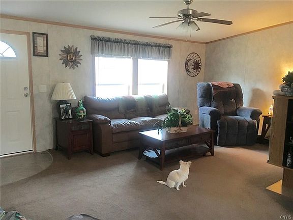Move in ready home is 6 years old & still looks brand new! 3 bedroom 2 full bath on 1.7 acres. Large open living room, bright kitchen w/plenty of cabinets & counter space, appliances are included, tall breakfast bar & dinning area has sliding doors that lead to the back deck. Laundry/mud room area off the kitchen. Master suite offers a walk in closet, huge bathroom to include his & her sinks, sunken corner tub & stand up shower. 2 more bedroom w/closets & another full bath. Outside is a stone driveway & plenty of room to add a garage, a nice wooden shed for your toys & a deep back yard that has trees for privacy or you could open it for a pool etc. Located outside the village so no village taxes yet only 10 minutes to Fort Drum & 5 minutes to Carthage schools & shopping.