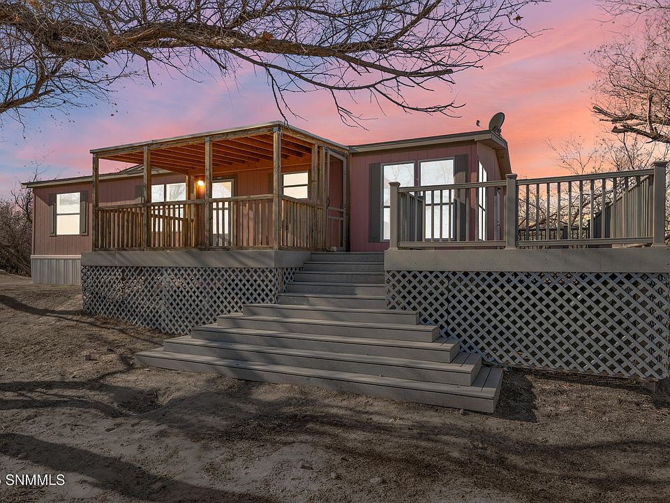 Stunning Views and Spacious Living! This 3-bedroom, 2-bathroom, 1,456 sq. ft. permanent manufactured home sits on 2.5 acres, just a short walk from the Rio Grande. Enjoy breathtaking Las Cruces scenery from the custom-built deck or the porch area, perfect for relaxing or entertaining. The interior boasts a comfortable, functional layout with ample living space and cozy bedrooms. Surrounded by nature and offering plenty of outdoor and indoor charm, this property is your chance to embrace a peaceful, spacious lifestyle. Don't miss it!