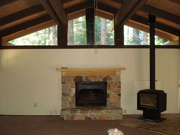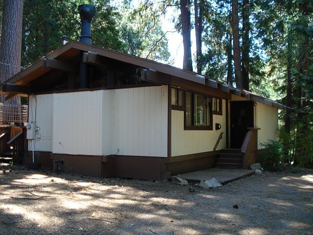 What an opportunity! Live in the Gold Ridge area for under $80,000. The adorable cabin surrounded by towering pine trees & offers a peaceful setting. The open concept floor plan floods the home with light. Updates have been started with endless possibilities including granite counters in the kitchen and bathroom and vessel sink as well. High beamed ceilings and a deck to enjoy the beautiful surroundings. The .25 corner lot has drive thru parking.
