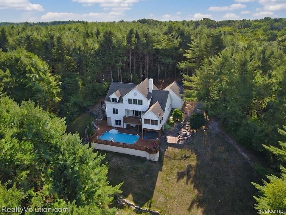 Rare opportunity awaits you on this one of a kind home and setting. Total seclusion is yours with this custom built home on 26+ acres. Tastefully remodeled within the last few years and updated for modern living. You will love living here so you can vacation at home with private wooded trails back to Farmers Creek and an inground heated pool. Open concept layout ideal for entertaining. Amazing brand new kitchen features expansive modern cabinetry, granite counters, including a large built in granite dining area with storage underneath. What a great spot for friends and family to gather. First floor laundry and large walk in pantry too. Soaring ceilings in living room with lots of windows, hardwood floors and a 2 way fireplace. 2 bedrooms on first floor. Upstairs has master suite with new updated bath and a private enclosed porch overlooking your property. Finished walkout offers 4th bed and full bath, kitchen, bar, pool table, and living room. All appliances, patio furniture, and the hot tub are included--Truly turn key. Built in safe room with steel door ideal for guns or other valuables. Backyard is your oasis at home. In ground heated pool with a robotic cleaning system and hot tub. Surrounded by all new composite decking and modern aluminum railing system. Expensive decking offers several levels to enjoy the views, brick paver patios, 2 outdoor bonfire pits, etc. Alarm system for security and a back up generator so you never lose power. Full house water filtration system, RO system at sinks and fridge. Located across the street from all sports and public Lake Nepessing. 26+ acres of wooded privacy with walking trails that extend through to two different nature parks(access via deeded easement). Excellent hunting property or for those who just want to be surrounded by nature and wildlife. 340 ft of road frontage offers a nice flat open spot up front for a future pole barn if you wish. This property has so much to offer--come view it for yourself.