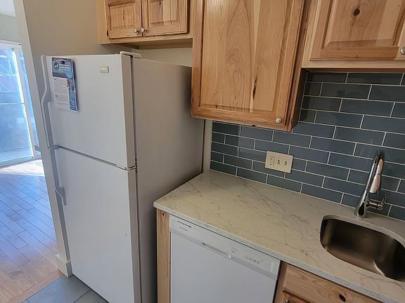 AVAILABLE NOW! Brand NEW kitchen with new cabinets, tile, and countertops. Brand new hardwood floor in living room too! 1-BEDROOM, 1 bath, condo style apartment on the ground floor in a very quiet neighborhood. Off-street parking, laundry room on premises, all electric kitchen appliances to include stove, dishwasher, refrigerator, and disposal included. Unit has private patio off back. Located close to shopping, bus lines, schools, and churches. Sewer, trash collection, snow removal included in rent. Tenant is billed for heat/hot water and Xcel must be put in their name. Cable, high speed internet, etc. is available, NOT included in rent.