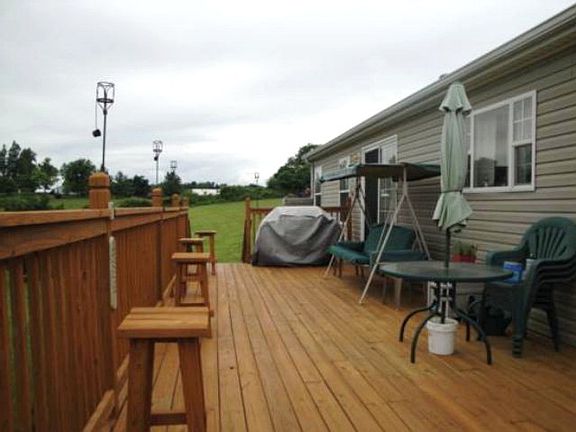 32x76 Clayton doublewide - 24x26 detached garage - 12x32 back deck - approx. 1300 ft. Nolin River frontage - good access to river - refrigerator, range, microwave, and dishwasher sells with property. Pond, home sits on a 4 concrete slab - prefinished drywall in all living areas - the home was built according to the present homeowners specifications.