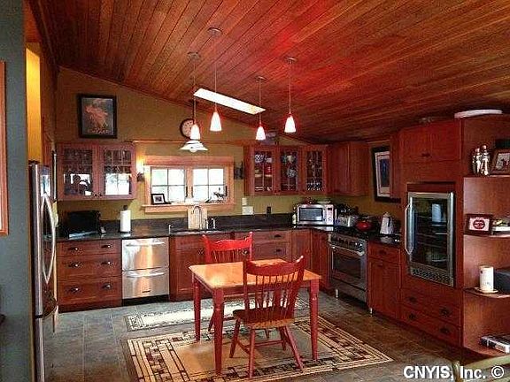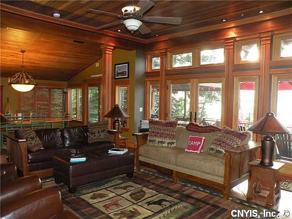 ARTS & CRAFT RIVER HOME-situated on private 1.34 acres. This home features 4BR/3.5BA, double-sided stone fireplace, cherry floors, mahogany & cedar ceilings, fitness room, and French doors that lead to deck with breathtaking views of the river & sunsets. Also includes a boathouse with living area above, protected deep water dockage and jet ski lift, remodeled guest cottage and detached 4+car garage and workshop. Call now to preview this river gem.