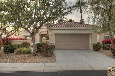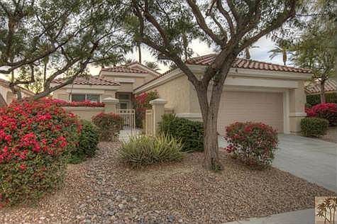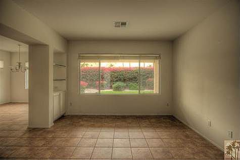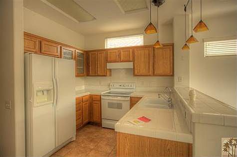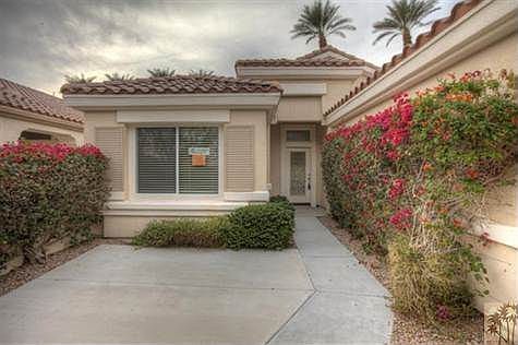Foreclosure sale in Del Webb's gated seniors community Sun City Palm Desert. This clean and updated Lanai floor plan has been modified from the builders original design and features 2 bedrooms, 2 baths with an attached 2 car garage. Wall from the original Lanai model floor plan has been removed, creating open and spacious feel in this beautiful home. Designer tile floors throughout except at the bedrooms which are carpeted. Kitchen nook for eating area. Beautiful gated courtyard entry and nice backyard with large patio area and Alumawood patio cover. Over 80 clubs and tons of amenties in this subdivision including two 18 hole championship golf courses, tennis courts, two fitness center facilities, clubhouses, four community pools, two onsite restaurants and more. Brokered And Advertised By: Windermere Real Estate Listing Agent: Chris S. Workmon