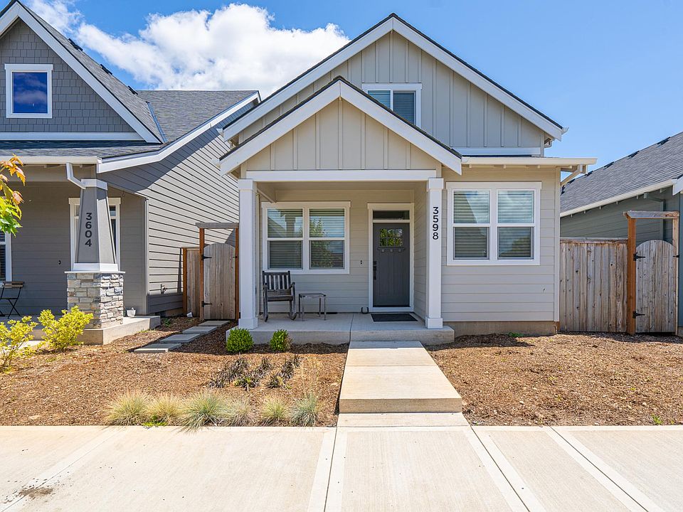 This adorable cottage is a 2021 build located in the quaint Chegwyn Village. It is just a short 5-minute drive to the heart of downtown Mcminnville. It features high level finishes including luxury vinyl plank flooring throughout, quartz counter tops, stainless steel appliances, washer/dryer, vaulted ceilings and more! All 3 bedrooms are generously sized with 2 upstairs and 1 downstairs. Enjoy living amongst some of the most beautiful Willamette Valley wineries and everything Mcminnville has to offer! This is a no smoking house. Income requirement of $7,000/month to qualify - 3-5 years of verifiable rental history (not with family), or homeownership, is required - Deposits range from 125%-200% of the rental amount - Pet upon approval. Application process directly with property agent. Please note, the front yard has been landscaped since these photos. Yard maintained by property owner. One year lease Security deposit of 125% to 200% required No smoking Pet upon approval Verifiable rental/homeownership 3-5 years (not with family) Employer referral