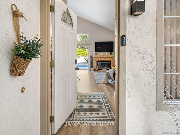 From the moment you arrive, this home feels calm, comfortable, and pleasantly private. This 3 bedroom, 2.5 bathroom home offers over 1800 ft² of natural light filled living space with vaulted ceilings, tall windows, luxury vinyl flooring, granite countertops, and stainless steel appliances. The open, flowing layout provides flexibility for a living room, family room, dining area, any of which may be used as a home office. The large primary suite offers a peaceful retreat, while owned solar adds energy efficiency and long term value.The backyard unfolds into a stunning private oasis featuring a beautiful sparkling pool, lush landscaping, and a striking mature desert specimen tree that adds both drama and serenity. With no through street on either side, the setting offers a rare sense of quiet and separation from traffic. Set in the peaceful Fox Run neighborhood within the Holmes School District and close to shopping, dining, and parks. This home offers comfort, efficiency, and an easy San Diego lifestyle.
