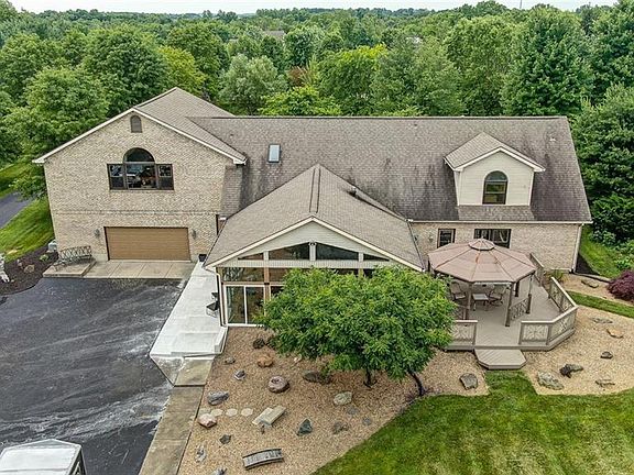 Custom built Two-Story Home with all the bells and whistles! This home features 4 bedroom, 4 full & 2 half baths, 2-1st floor Master suites with walk in closets, 5 acre wooded lot with pond and walking trails around entire property, custom kitchen with granite counters, stainless appliances, huge island/bar that seats 6 people, new LVT flooring, whole house Generac generator in 2022, new granite & faucets in every bath, new concrete in rear, oversized 3 car garage with newer furnace, pole barn 30x40 with 100 amp electric, new roof 2022, new windows 2021, new well pump 2022, Ring security system will convey along with surveillance cameras and driveway alarm, deck refinished and treated 2022, above ground pool with new filter & pump with a huge deck and gazebo, central speaker system on first floor that will convey, 4 season room with all new flooring, new sliding glass doors, new interior trim and doors, freshly painted, ceiling fans through out. Its all in one! Must see today because there is no tomorrow. The home sits back from the road with beautiful mature trees lining the drive way. Truly amazing home just waiting for you!