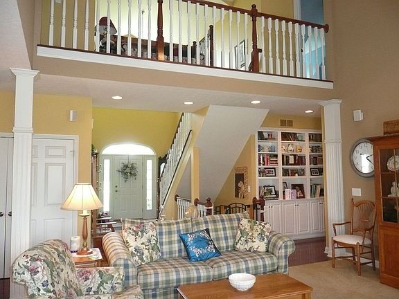 Quite a Beauty!! Perched on nearly 1.5 acres you'll love this long driveway adorned by lamp posts leading to a gorgeous pristine cape cod with inviting full front porch. Lots of extra special features: 3 season room, screen porch off luxurious 1st floor owners suite with art display built ins leading to foyer. Two ensuite BR's on 2nd level. Beautiful island kitchen opens to the 2 story great room. First flr den also has vaulted ceilings & exterior entry. Separate 1st flr sunny spacious laundry room. Colorful professional landscape package w/ koi pond in front. Patio, 2 tier deck w/ pergola and 3 season room is perfect for entertaining! Side load 3 car garage. Truly special setting! Immaculately cared for home inside and out! Updated mechanicals in recent 7 years! Amazing private lot!