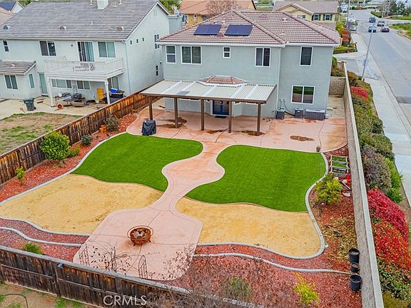 Welcome to Avry Way! This spacious 5-bedroom, 4-bathroom home offers the perfect blend of comfort and luxury. Downstairs, you'll find a bedroom and full bath en suite, along with ample living space including a living room with a fireplace and expansive family room. Upstairs, you're greeted by a large primary suite with a spacious closet, while another generously-sized room serves as an en suite bedroom for added living convenience. Step outside to your backyard retreat with an alumawood patio cover and fresh turf to match the front yard for easy maintenance. Conveniently located near shopping and the 15 Freeway, this home provides both convenience and tranquility for your family's enjoyment.