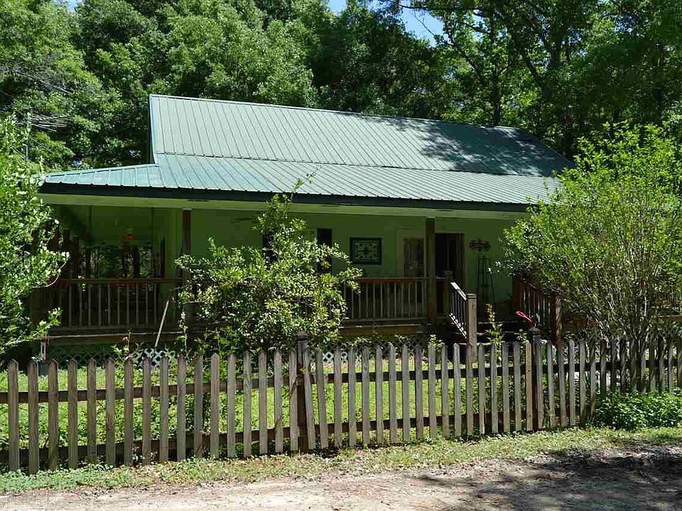 Secluded 87+/- acres on the upper end of Bay Minette Creek. Home constructed on raised slab with metal studs, ceiling joists, and rafters. Metal roof, hardy plank siding. Blown cellulose Insulation with borax. Barn/shop 40x50. See pictures for barn description. Porches on 3 sides. Possible 4th bedroom.