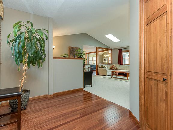 ALGOMA TOWNSHIP-ROCKFORD. Handsome from the street & equally as unique and lovely inside, this walkout ranch style home lives large. Nestled on 2 acres, with its own pond, & within walking distance to down town Rockford, location, condition and amenities abound. The private, spacious & inviting foyer share a visual of the open living spaces & the secluded & beautiful back yard. Skylights showcase the great room, a cathedral ceiling expands the semi-formal dining and the extraordinary kitchenis the heart of this home. Updated throughout, this home boasts an exceptional master suite with an additional wing housing 2 bedrooms & a large family bath. The walkout level, w/ 9 foot ceilings, includes 2 bedrooms, full bath, office, family room, storage room & laundry. An attached garage,
