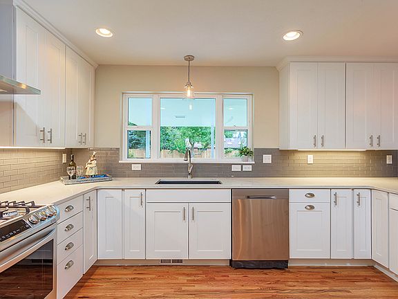 Exquisite design and modern elegance are completely embodied in this remarkable two-story in the sought-after community of Cherry Knolls! This home has been completely remodeled throughout and maintains ALL NEW double-pane windows, carpet, electrical, tankless water heater, concrete driveway and patio, and fresh interior and exterior paint. Beautifully refinished hardwood floors and natural light flow throughout the open and airy layout. Entertain in style in the exquisite kitchen showcasing stunning slab quartz countertops, 42-inch shaker-style cabinets with timeless crown molding, glass subway tile backsplash, vintage pendant lighting, a breakfast bar, casual dining space, and stainless-steel appliances that include a gas range and a wall-mounted hood range. The adjoining family room overlooks the incredible backyard and displays a wood-burning fireplace detailed with exposed brick and custom built-ins. Upstairs, the spacious master suite offers the ultimate retreat. Featuring a cozy wood-burning fireplace, double closets, and an elegant spa-like bath that is well-appointed with sleek his-and-her vanities and a frameless glass shower complete with floor-to-ceiling subway tile with custom inlay and an attractive pebble stone floor. Also on the upper level are three generous secondary bedrooms and a full hall bathroom that includes a double vanity, floor-to-ceiling shower tiles, and modern finishes. Spectacular finished basement encompasses a large rec room, fifth bedroom with a cedar-lined closet, fully updated bathroom, and a large storage space with a high efficient furnace and the new tankless water heater. Situated on nearly a third-acre lot, the wonderful park-like backyard provides plenty of room to entertain and features a sizable covered patio with lighting, a new fence, and a convenient utility shed. Excellent location surrounded by parks, trails, and top-rated Littleton schools. Minutes from the 24-acre Cherry Knolls Park, the community pool, the popular Streets at SouthGlenn, and infinite dining options. This extraordinary home is a must-see!