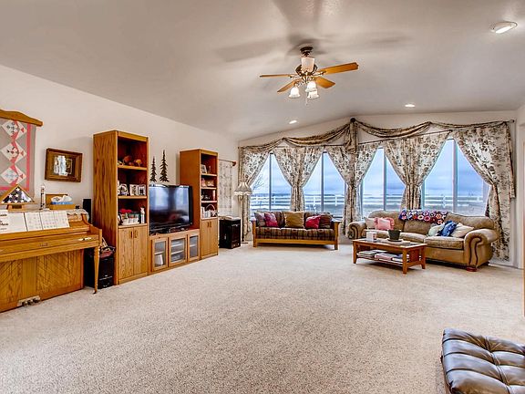 Great ranch on one level with 4 bedrooms, 2 baths, big and open. Huge laundry room, pantry, all appliances, tiled counters, well, propane, greenhouse, patio area and mountain views. There's a pole barn with electricity, heat and a huge workshop with heat, attached door, cabinets, tool chests, separate thermostat and electrical box. Other exteriors are solar hot water, firepit, awnings, garden shed, outside water, water softener, hot water heat, freezer, lots of light, generator and alarm system. Beautiful views too! Carpet allowance for buyer also. Water rights are in the deed.