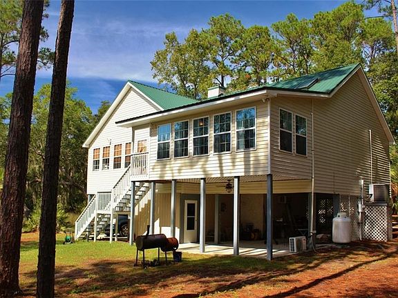 Delightful marsh front home with views out to the Julienton River. Home has dock and ramp access. Enjoyable views from Great Room, Dining area, Kitchen and Sun Porch. Split bedrooms all with baths. Covered parking with easy access into home. Community owned water system with fire hydrants.