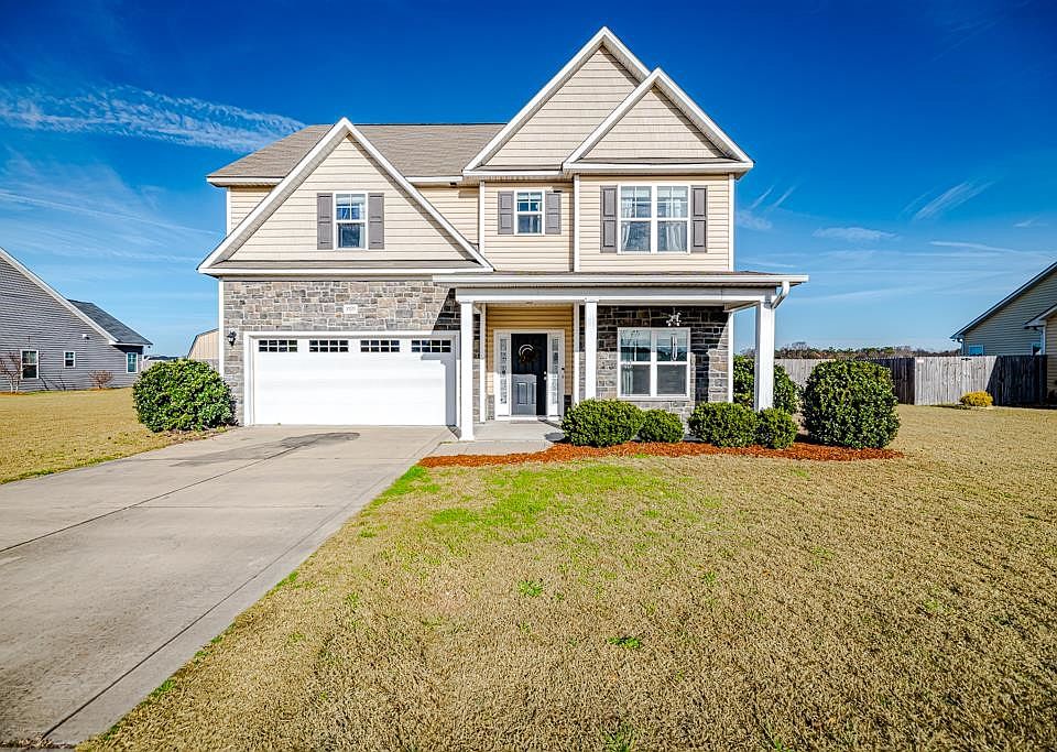Come enjoy the peace and quiet in this lovey two story home with no HOA! This back yard is perfect for entertaining with a pergola, extended paved patio, and fire pit. Inside has all of the ideal features including a mudroom, stainless steel appliances, granite countertops, fireplace, and double closets in the spacious primary suite, a garden tub, two single vanities and plenty of counter space. Perfectly located near shopping centers, and just a short drive to Fayetteville and Fort Bragg!