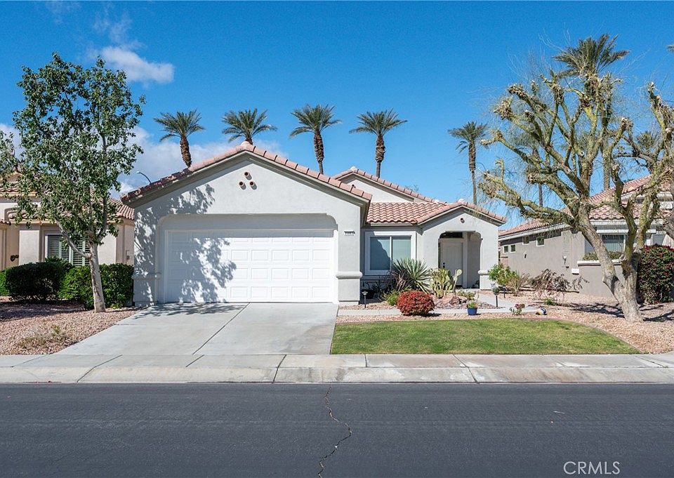 Sun City Palm Desert - Barbados highly desirable floorplan located in Del Webb Sun City, 55+ gated community. Stunning remodeled single level home with an open concept. The kitchen cabinets with new hardware, new quartz countertop, new subway backsplash, new vinyl laminated flooring, recessed lighting, built in appliances and breakfast bar. Dining area and living-room, with new waterproof vinyl plank flooring, two tone interior paint, 3" based boards and new light fixtures. The master suite has a bay window, walk-in closet, new carpet and ceiling fan. The master bathroom with shower stall has glass tile and two walls are porcelain, glass doors, new plumbing fixtures, vanity with dual sinks, new vinyl plank flooring and light fixtures. Ample second bedroom with new vinyl plank flooring, two tone interior paint and ceiling fan. Common bathroom remodeled with vanity, lighting and plumbing fixtures. Individual laundry room with new washer and dryer and overhead cabinets. Oversized two car garage with direct access. Privacy backyard with a fountain, concrete pad and synthetic turf, and a lemon tree. Front yard offers an outstanding curb appeal. This home is a short distance to the Lakeview Clubhouse. HOA amenities: (3) clubhouses, 2 golf courses, tennis, bocci ball and community swimming pools.