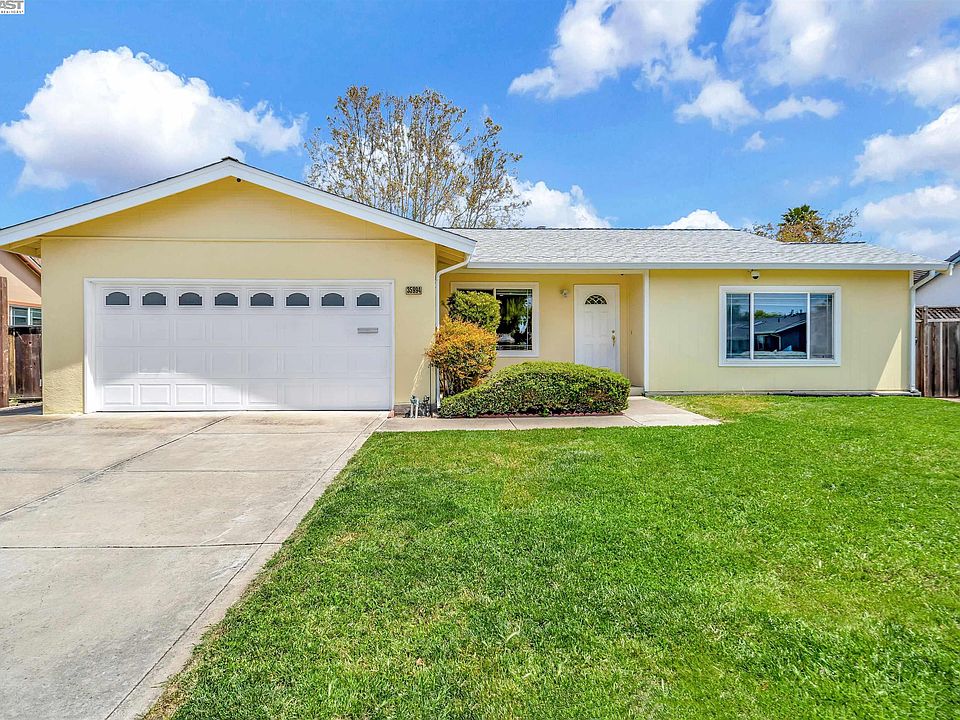 Introducing a beautiful single-story home in an ideal central location! Desirable open floor plan includes a separate living room and family room, light & bright kitchen & formal dining area. Beautifully updated kitchen has quartz counters, sleek white cabinets and stainless steel appliances. Enticing features inside and out including stylish laminate floors, newly installed plush carpeting, dual pane windows, new water heater, ample storage & so much more! Spacious primary bedroom is the perfect retreat. Backyard has a gorgeous Pavers patio, large storage shed & lush lawn - a perfect space for relaxing and entertaining. Ideal commuter location - close to 880, Dumbarton Bridge, BART and Silicon Valley companies. Nearby park, schools, shopping, entertainment & local eateries. Close to the beautiful Don Edwards National Wildlife Refuge, Coyote Hills & Ardenwood Historic Farm! Hurry,this well-love and well-maintained home will go fast!