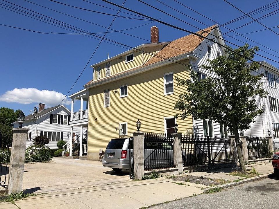 2 houses on one lot! Front house is a 2 family with modern apartments! Apt 2 is a townhouse style! Back house is a 3 bedroom single family in excellent condition with a finished basement. Huge stamped concrete driveway, patio area, and grape vines. Property is completely fenced and a locked gate in front. This is a unique investment property that makes it obvious that it was a long time owner occupied setup.