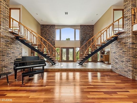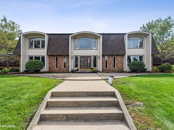Just under 10 acres of property with a $300,000 out building that features 6 garage bays (in addition to the 4 car garage attached to the home!) and 2 office spaces! The perfect car enthusiasts dream to store up to 10 cars right on their own property! The home features 6 bedrooms with over 9200 sqft and a dramatic dual floating staircase entrance. Indoor swimming pool, updated kitchen and a rare to find fenced in area for the yard! An absolute must see if you someone is looking for a secluded place, but be within 5 minutes off the expressway for easy access and commuting! Also zoned F which allows for the shooting range on the property! Ready to play? This property is a dream come true! 2-story entryway with 2-sided brick fireplace between sunken down Living and Family Room. A dining room that will host the most amazing holiday gatherings and a gourmet kitchen with VIKING refrigerator, double oven and granite countertops. The pool room with 2-story rec room is right off the kitchen and provides the perfect opportunity to enjoy the 'fun side' of the house all year round! Storage closets and a full bathroom can also be found on that side. The main house is a symmetric statement piece with the Primary Bedroom at the center! Full spa bathroom, wall to wall closet space and a private balcony! 5 additional bedrooms upstairs, where 2 of the bedrooms were combined into a bedroom with sitting room at the moment. 2 jack and jill style bathrooms upstairs are allowing access from the bedrooms. The lower level also features a first floor bedroom that can be used as an office space. The 1st floor bathroom is adjacent to the 1st floor bedroom. Don't miss your expansive mudroom/laundry room (laundry chute from the main bedroom is still there!) which connects to your 4 car garage attached to the home. 9.85 acres of land, low taxes and a home that is build in a picture-perfect location! Located right across the street from the Nature Sanctuary. Come on up the private drive and discover all that 35W755 Boncosky has to offer!
