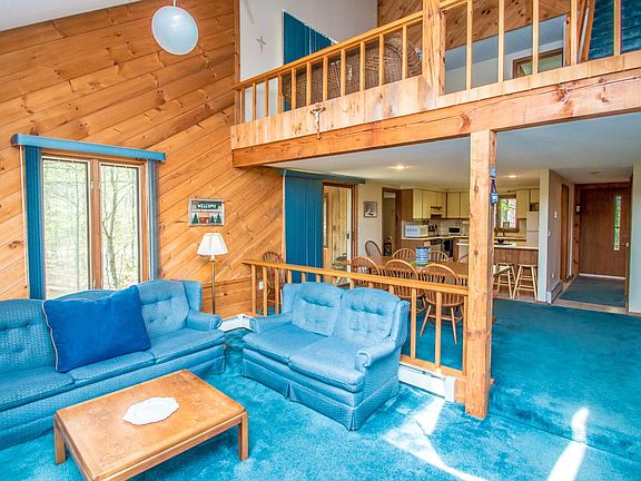 Spacious town house style home with Saco River access and attached garage. Bring family and friends and enjoy a short walk to the banks of the Saco River with easy access to Attitash/Bear Peak and hiking in the White Mt National forest. Overlooking a peaceful meadow there is plenty of space for a crowd. Main floor level has unfinished space for an additional bath and living space or add ski lockers off the garage. Field stone fireplace and cathedral ceilings highlight the bright open floor plan of this great Bartlett location.
