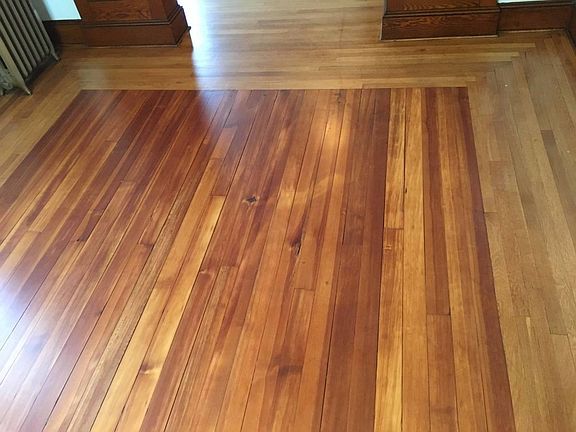The real excitement though is walking through the solid wood panel door to your living and dining room. This open layout really shows off the original wood trim and adds so much character to this entertaining space. There are original columns that help separate the two spaces. There is crown molding, extra tall baseboards and period casement trim around every window. There is a built-in hutch in the dining room to show off your best plateware, or it makes a great bar. Even the floor is special with an inlay red oak border around the stunning fur floors. Both bedrooms carry the same feel with gleaming hardwoods and solid panel doors with original hardware.