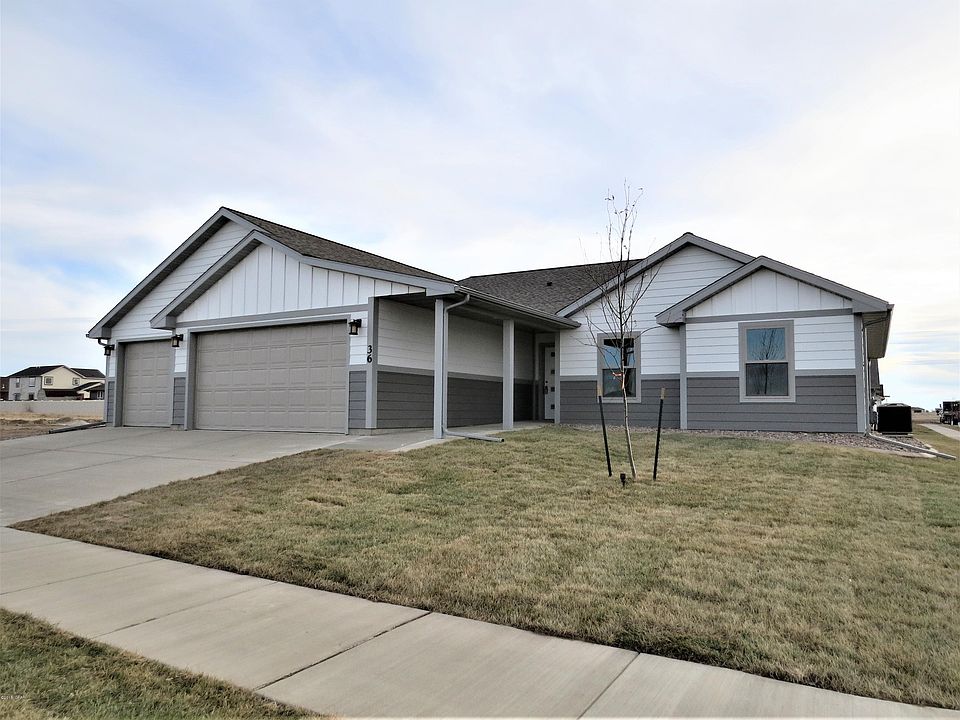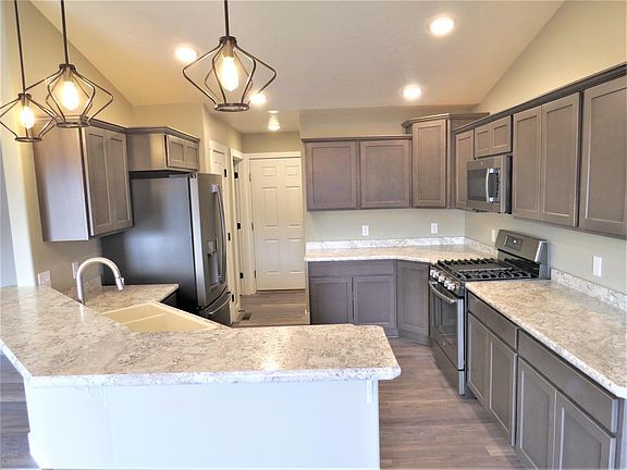 Convenient single level new construction built by KIB Homes! Building is complete & features 4 bedrooms including large master suite with double sink vanity, tile shower & walk-in closet plus private sitting area. Open floor plan with breakfast bar in kitchen, spacious dining & living rooms with vaulted ceiling. Over sized three car garage with extra work space in back. Convenient laundry/mud room right off garage. Stainless steel appliances including gas range. Landscaping includes sprinkler system, curbing, sod, trees & lights.