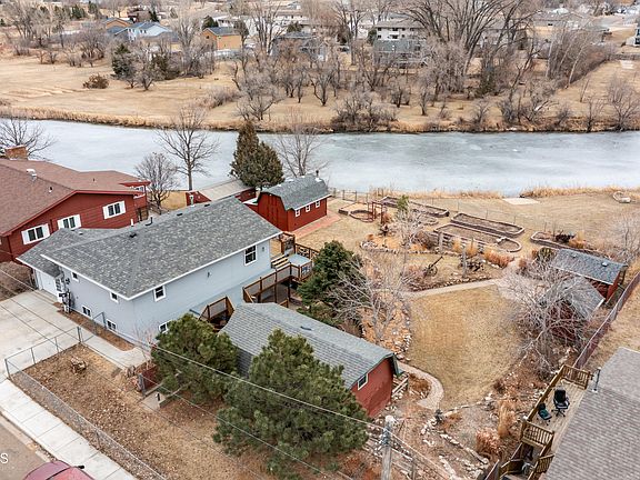 Welcome to one of Dickinson's most enchanting properties—nestled along the Heart River with sweeping views, lush gardens, and direct river access where you can launch your kayak right from your own dock.