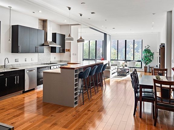 Modern living, in a luxury loft @ South Boston’s “Broadway Village". Beautiful woods floors and 11.5 ft. ceilings welcome you in the warm, open space, w/ southwest exposure via two sets of impressive floor to ceiling windows. Like to entertain? The chef’s kitchen in this expansive 1370sqft apt home features a custom canary wood waterfall island with ample wrap-around seating, wine storage, sumptuous Italian Carrara marble countertops, & SS appliances. Treetop and Boston skyline views from your living room complete with remote controlled roller shades . Ultimate floorplan flexibility w/ movable Italian glass walls separating living area from the well proportioned 2nd bedroom w/ blackout shades. The Primary bedroom is a great size w/ W-I-C. The Spa-like bath features a large, tiled, walk in shower with floating double vanity and in-unit WD. 2nd full bath w/ tiled tub shower. Amenities include: spacious common roof deck with city views, elevator, & garage parking. Steps to Broadway T stop