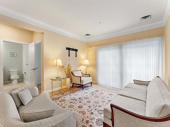 Welcome to Reading Woods 55+ Absolutely stunning unit! Move in ready with kitchen and bath upgrades! This beautiful unit has 9ft. ceilings, an eat in kitchen with stainless appliances and granite countertops. Large living area with a formal dining room for your entertaining needs. The primary suite has a walk- in closet, a soaking tub, and a separate shower. The guest suite features an additional walk- in closet. Den/office space and in unit laundry with additional cabinets. Large windows with custom shades offer plenty of light and privacy. This unit has tandem parking for 2 cars directly across from the elevator.