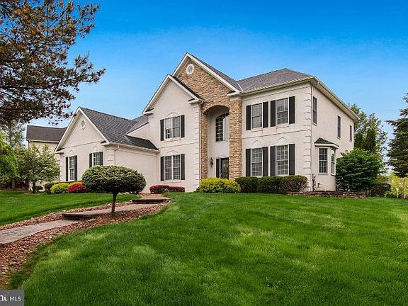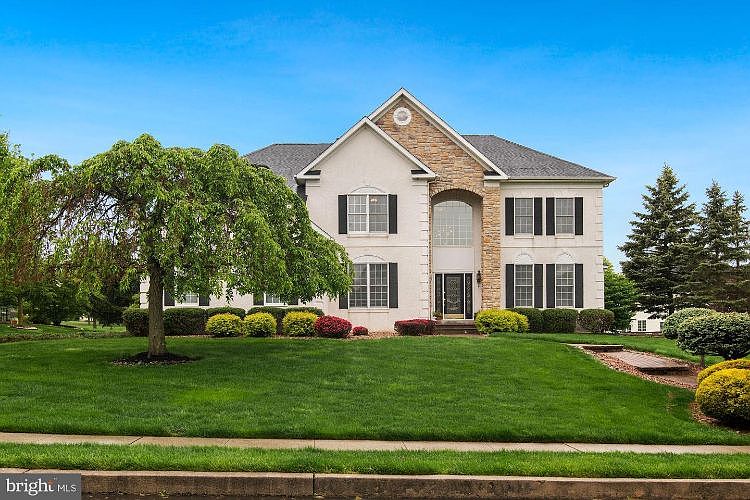 Lovely Somerset Chateau model in the desirable Northampton Hunt neighborhood. Great curb appeal with professional landscaping, welcoming walkway, two-story covered porch, and custom front entry. This home greets you with a two-story foyer with the grandeur of a curved staircase. Gorgeous hardwood floors throughout the foyer, den, living room, dining room, sunroom, and kitchen. The white French doors in the foyer open to the private den. The formal living room invites guests for social gatherings. The large dining room has a butler's pantry and is perfect for entertaining. The gourmet kitchen features upgraded cabinets, appliances, walk-in pantry, tiled backsplashes, and granite countertops leading to a large all-season sunroom with French doors opening to deck patio and overlooking a beautiful landscape backyard with an extensive EP Henry patio and outdoor sitting area. The stunning two-story family room has a stone fireplace stretching to the ceiling, a back staircase, a wall of windows bringing natural lighting to the house, and French doors leading to deck patio and an incredible open space. There are four large bedrooms on the second floor. The amazing owner's suite has sitting area, tray ceiling, two walk-in closets, and an en-suite bath with jetted tub, a shower with glass door, a skylight, and dual sink vanities. The princess suite has a private bath, and there is a shared "Jack and Jill" bathroom between the other two bedrooms. All bedrooms, family room, and the sunroom have ceiling fans. The fully finished walkout lower level offers great multifunctional spaces (can be used as media room, gym room and bed room) with a full bath, wet bar area, and extra storage. Three car side entry garage. Close to shopping, parks and located in the award-winning Council Rock School District.