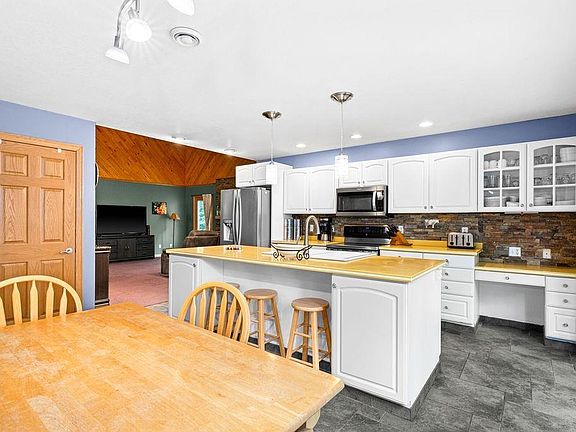 Fall in love with this stunning 4 bedroom, 3 bathroom home nestled in the highly sought after Esko community, just moments away from the serene Midway River and top rated Esko schools. Your new home sits on a spacious one acre lot, offering ample outdoor space for recreation and relaxation. Wake up and enjoy your morning coffee out on your deck that wraps around your new home. Step inside to discover the perfect blend of comfort and elegance, featuring in-floor heating throughout to keep you cozy year-round. The main floor boasts a luxurious master suite, complete with a private 3/4 bath, expansive walk in closet (12x8), while providing a tranquil retreat. Entertain guests in the formal dining room, or gather in the impressive great room, where a gorgeous stone fireplace serves as the focal point. In addition to the great room, you have a main floor living room with hard wood floors. Enjoy your authentic Finnish sauna on a cool fall night. The kitchen will be a joy to cook in with center island featuring a farmhouse sink, and a breakfast bar for relaxing mornings. Updates to the kitchen include a gorgeous stone backsplash, new tiled floor with in floor heat, and all stainless steel appliances. As you ascend to the upper level you will find 3 more bedrooms all with walk in closets, and one bedroom with an office/den space that combines well with the large bedroom. There is a convenient full bath that completes this floor. Your new home also includes an attached 3 stall garage (21x34) on a heated slab, offering extensive storage and workspace options. Some of the recent updates include new roof, air exchanger, natural gas connection, 3 mini splits for AC, kitchen appliances, farmhouse sink, kitchen backsplash, new tiled floors, LVP flooring, fireplace stonework and oak reclaimed wood mantel and so much more. With it's prime location, modern amenities, and beautiful design, this property won't last long. Reach out today before your new Esko home is gone.