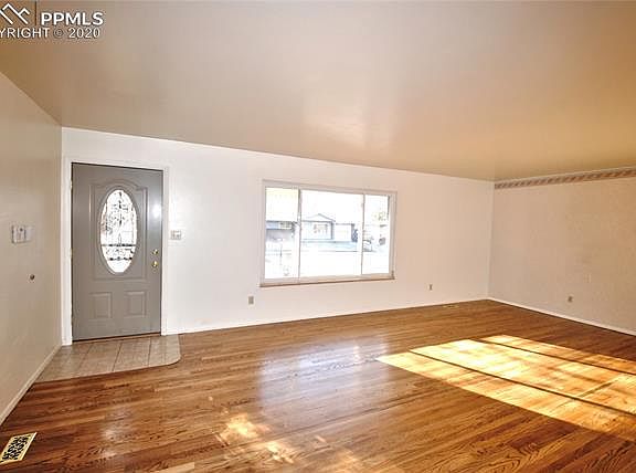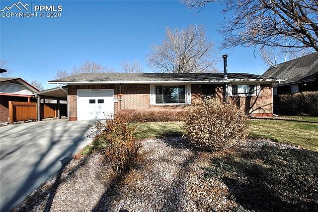 BEAUTIFUL Gorgeous hardwood floors greet you in this brick rancher with extended garage and huge attached carport. Sunroom addition and patio for year round enjoyment. Huge main level master suite plus full finished basement. Champion vinyl window, 2 sheds, Central A/C and 40 year shingle roof. All kitchen appliances stay in the upgraded oak cabinet kitchen. Gas wood stove keeps the family room cozy and only minutes to Fort Carson and Peterson AFB. Back on market and ready to close
