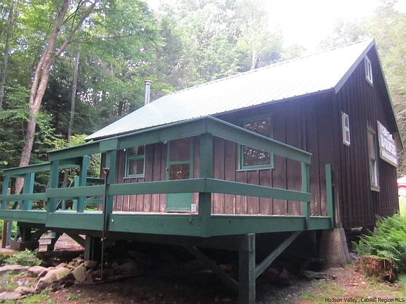 Fantasy mountain cabin! Get back to nature in this sturdy, well-maintained & much loved retreat in Denning Township. Built in 1970 & improved over the years, its 572 sq ft feels like more space than you'd imagine, boasting a vaulted, beamed ceiling & open plan living area with separate 6x14 bunk room & a sleeping loft. There's a little efficiency kitchen in one corner & a half bath next to it with plumbing connecting to an on-site septic (owner believes it is likely a stone-lined cesspool), but there is no running water, other than a lively stream that dances through the property, so bring a bucket! A 10 ft deep back deck runs the length of the cabin & overlooks the lush, wooded landscape where all you'll hear is birdsong & the flow of the stream!