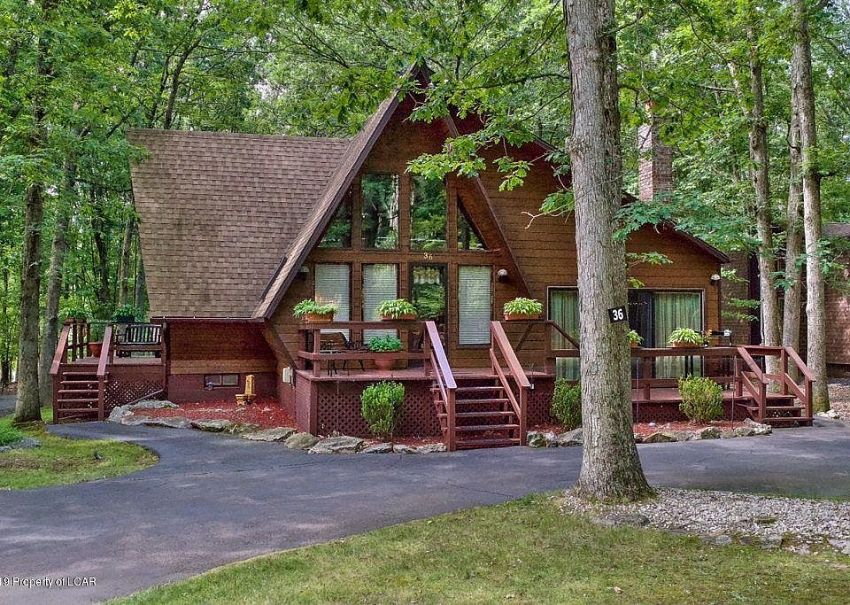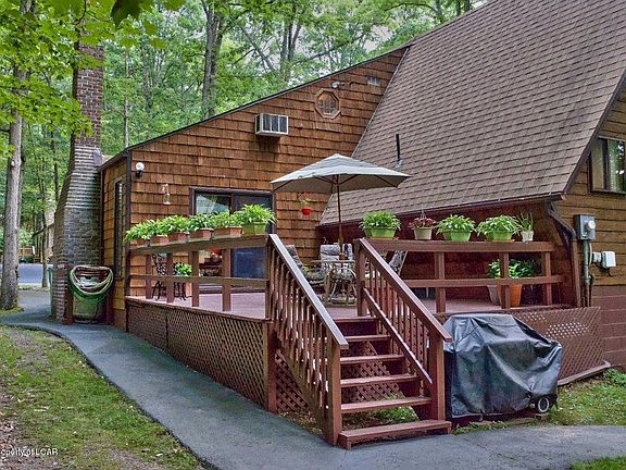 Live, play & relax in this charming chalet in a desirable resort neighborhood of Eagle Rock Resort with knotty pine walls, loft, cathedral ceilings, deck, garage & a park-like setting. The amenities of Eagle Rock Resort include skiing, golf, gym, spa, fishing, hiking, restaurants, bars, horseback riding, lakes & more! Perfect for a home or home away from home. Did you know you can board your horses at Eagle Rock? Everyone gets free access to the Full Gym , free usage of boats on the lakes, you can hike up to the Eagle Rock and explore Tomhicken Falls, enjoy a round of golf a choice of 2 private golf courses. 1 is an executive course and the other is a full 18 hole course. Their Spa has a full menu of services for Men, Women and Children. Special features include indoor pools and outdoor pools, tennis, indoor and outdoor basket ball, softball, horse back riding, restaurants, bars, community activities and more. The resort is truly a masterpiece and you can be a part of it all.