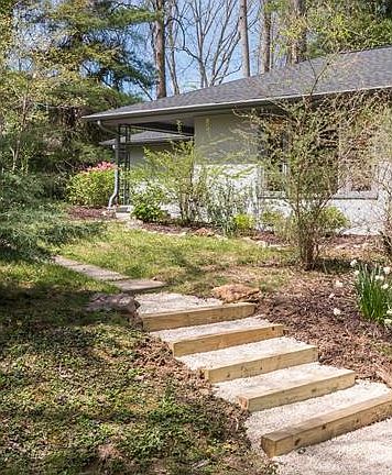 This stately yet cozy home sits on a quiet and private .51 acre lot just 10 minutes to downtown Asheville. Tray ceilings in the living room and kitchen add an old world charm to an easy, flowing one-level floor plan with 2 bedrooms / 2 baths and laundry on main. Hardwood floors through-out. Pellet stove. Single garage in basement with ample workshop and storage space. Swing on the covered front porch or hang out on the screened-in deck out back. Add your own vision and updates. Priced AS IS.