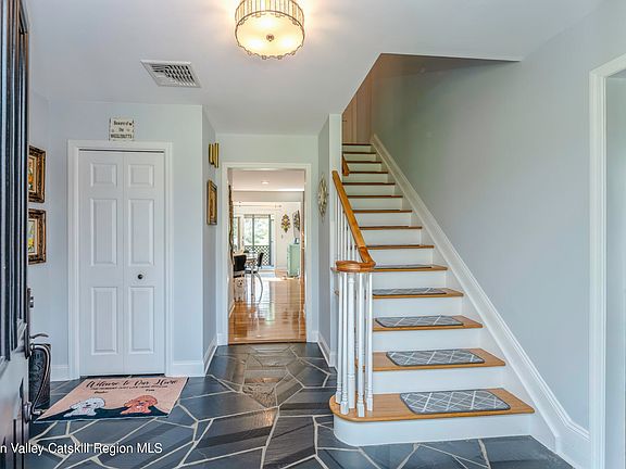 This Hillside Acres beauty is minutes to Trendy Uptown Kingston with the Farmers Market, Amazing Eateries, Art, Tennis Club, Golf Course, so much to do! Well over 3,400 Sq. Ft. Basement walk out not included in the Square footage. First floor has Large entry foyer, Huge LR, Stylish Eat-in Kitchen, Sky Lights, Dining Room , Family Room w/ Gas Burning FP, Powder Room, Screened in Dreamy Porch, Double Deep Garage!! Oohlala! Upstairs has 4 nicely sized Bedrooms, Primary en Suite and Additional full bath. All of this and Beautiful Decking Framed by .90 Acres/-